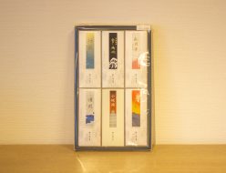 淡麗香樹林・花すみれ・光陰、3種類のお線香と、毎日のご灯明には欠かせない小蝋燭をセットにした豪華なご進物線香セット「香セレクト」です。