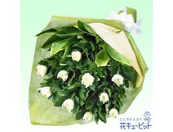 ホワイト・グリーンでまとめた涼しげな雰囲気のアレンジメントです。トルコキキョウ・カーネーションのやわらかなフォルムが、故人を偲ぶ優しい気持ちを表現しています。