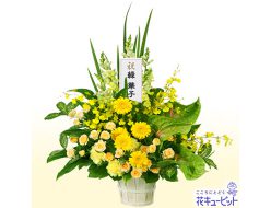 お祝い用スタンド花の定番です。贈り先を選ばないイエロー系です。※花器(スタンドなど)はレンタルです。