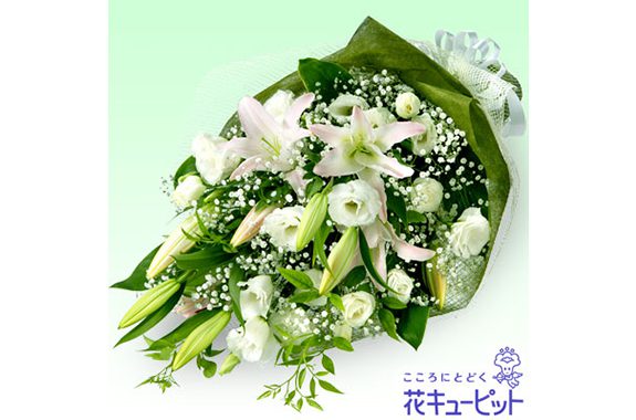 | 主な花材 | 薄いピンクまたは白オリエンタル系ユリ、カスミソウ |