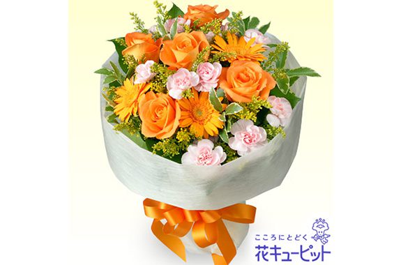 アレンジバラをメインにポップな色合いの花たちは明るく元気な人に贈りたい花束!