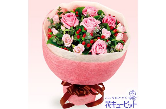 | 主な花材 | ピンクバラ、ピンクSPバラ、赤ヒペリカム |
