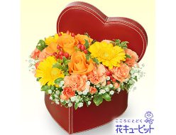 4,000円~, アレンジメント, お祝い, お祝い, お祝い全般, お花の種類, ガーベラ, ガーベラ, スタイルから探す, バラ, 予算から探す, 用途から探す, 結婚記念日, 誕生日の花を探す, 誕生日フラワーギフト, 誕生日フラワーギフト一覧イエローオレンジのハートボックスアレンジメント【4,000円+税】511068