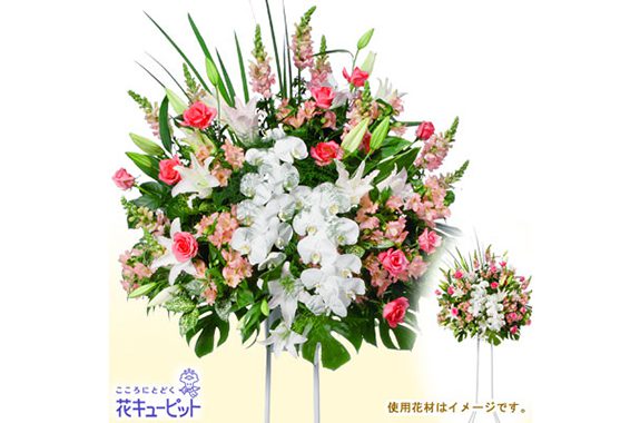 スタンド花お祝い一段(ピンク系、胡蝶蘭入り)【30,000円+税】511178