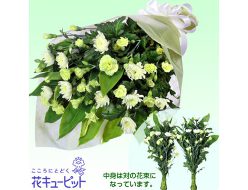 シンプルに白でまとめた花束です。お届けの時は一つに包装してお届けします。