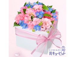 まるでプレゼントボックスにお花が詰めこまれたようなアレンジメント。ふんわりとしたリボンが優しい雰囲気を演出します。