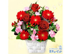赤バラと赤ガーベラのスクエアバスケット【5,000円+税】511904