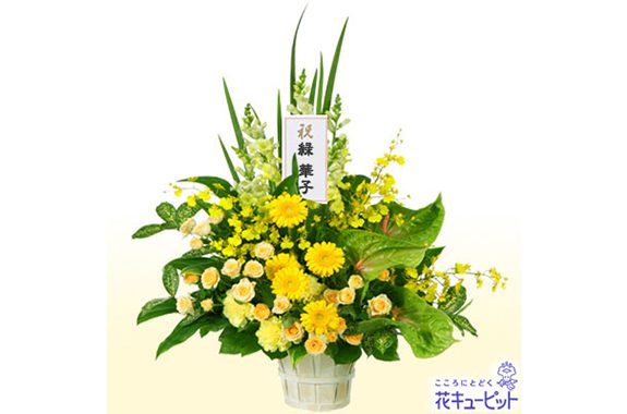 | 主な花材 | 黄オンシジウム、グリーンアンスリウム |