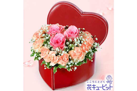 ハート型のボックスにお花と一緒に気持ちを込めて贈りませんか?