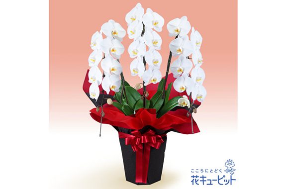 | 主な花材 | 胡蝶蘭3本立ち(白)開花輪24輪以上 |