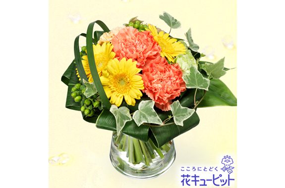 | 主な花材 | 黄ガーベラ、オレンジカーネーション |