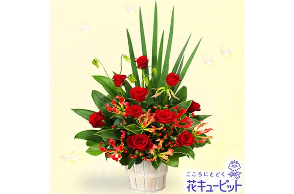 人気の赤バラのゴージャスにアレンジは贈り物にぴったりです。情熱的な赤い花に思いを乗せて贈りませんか。