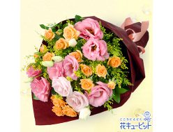 4,000円~, お祝い, お祝い, お祝い全般, お花の種類, スタイルから探す, トルコキキョウ, トルコキキョウ, バラ, バラ, 予算から探す, 用途から探す, 花束, 誕生日の花を探す, 誕生日フラワーギフト, 誕生日フラワーギフト一覧, 退職祝いオレンジバラとトルコキキョウの花束【4,000円+税】511171