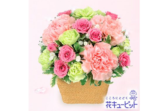 優しいピンク色でまとめたアレンジメント。スプレーバラが上品な雰囲気を演出し、幅広い年齢の方におすすめのフラワーギフトです。