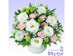 白とピンクの花々で淡く優しい気持ちを表現したアレンジメントです。