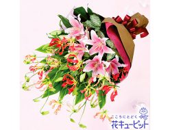 ピンクユリと真っ赤な花が特徴のグロリオサの花束は、贈りものにぴったり!華やかなだけでなく、上品さを兼ね備えた花束はお祝いごとや発表会などにもオススメです♪
