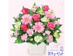 キュートなピンク色のアレンジメント!女性にぴったりの華やかな一品です。