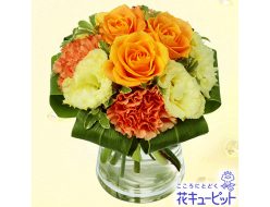 オレンジバラのグラスブーケ【3,500円+税】511737