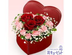ハートをかたどったボックスに、情熱的な赤バラをアレンジ。大切な方への心を込めた贈りものとして、さまざまなお祝いや記念日に最適なフラワーギフトです。