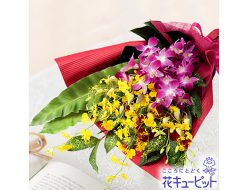 デンファレとオンシジウムを使い上品な花束に仕上げました。気品のある花姿は贈る相手を問わず、どんなシチュエーションでも喜ばれます。