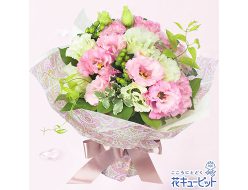 愛らしいピンク色が、さわやかなグリーンによく映えるブーケ。ひらひらとしたレースのようなトルコキキョウが、お祝いのシーンを華やかに盛り上げます。