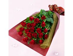 誰もが憧れる真っ赤なバラの花束です。シックなラッピングで束ねたバラは、一味違う特別な贈りものとして喜ばれることでしょう。大切な人への贈りものとしておすすめのフラワーギフトです。