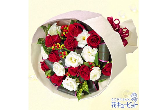 品番:511920 品名:赤バラとトルコキキョウのブーケ