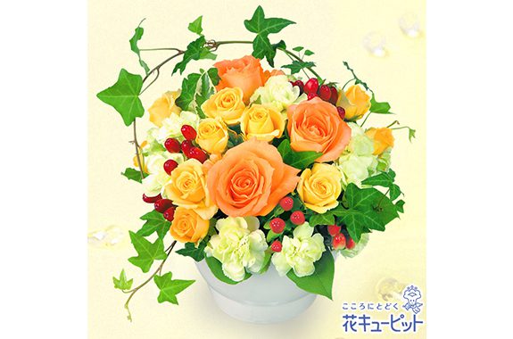 4,000円~, アレンジメント, イエローオレンジ, お祝い, お祝い, お祝い全般, お花の種類, カラー, スタイルから探す, バラ, 予算から探す, 新築・引っ越し祝い, 用途から探す