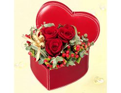 ハートボックスに赤バラを上品にアレンジしました!キュートなハート型のボックスにお花と一緒に気持ちを込めて贈りませんか?