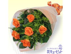 男女を問わず人気の高いオレンジバラの花束♪ちょっとしたプレゼントにも最適です。