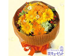 ボリュームたっぷりのイエローオレンジのガーベラの花束!秋の訪れを感じさせます。