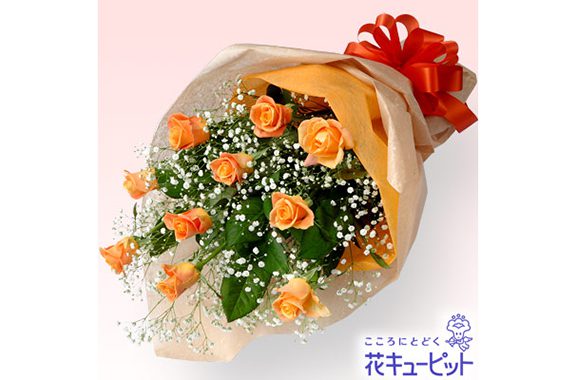明るく元気な人にはオレンジバラがピッタリです!シンプルなオレンジバラの花束は年代を問わず幅広くよろこばれる花束です。