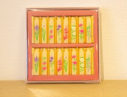 油煙が少なく、最後まできれいに燃える、蜜蝋ならではの炎が特徴です。絵ローソクとなり萩、カーネーション、菊、梅、桔梗、桜、水仙、あやめが各2本入っています。